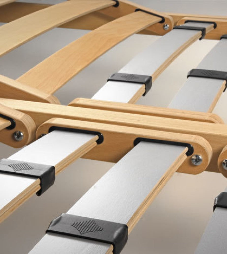 • Piano rete: 13 listelle in multistrato di faggio misura 68×8 mm (68×12 mm nella versione 120 cm)