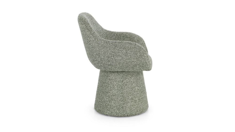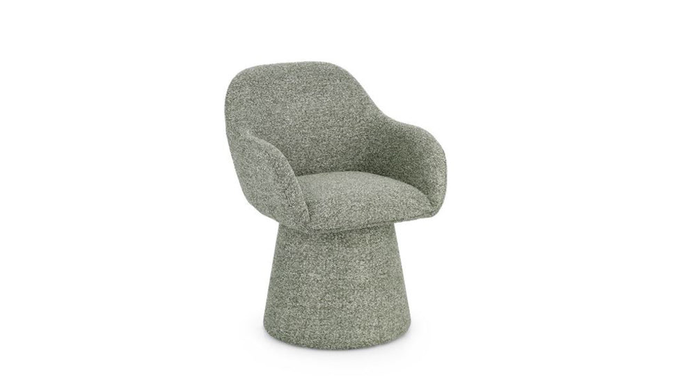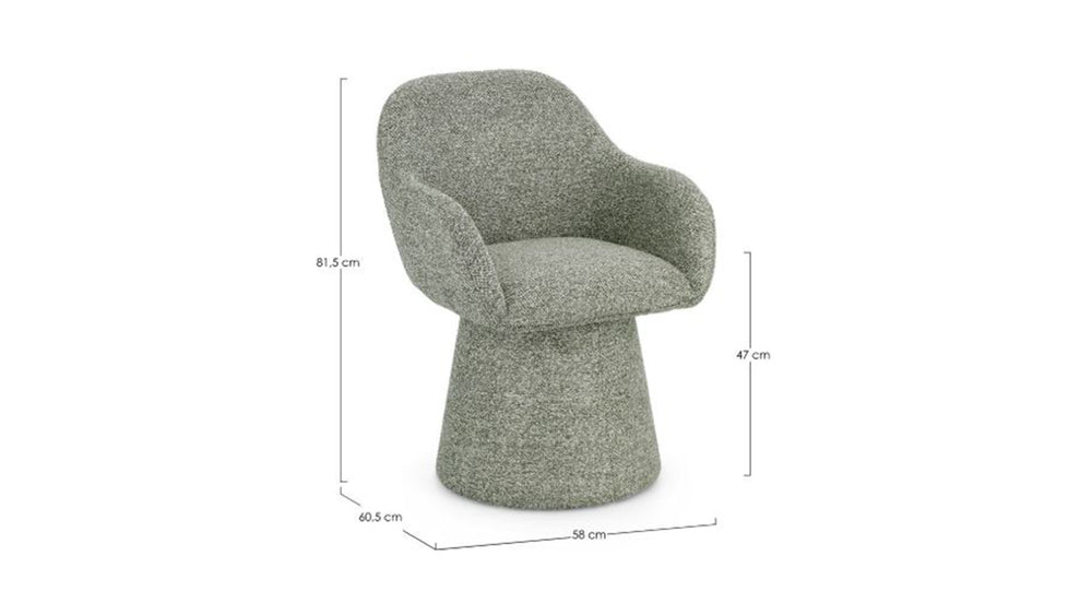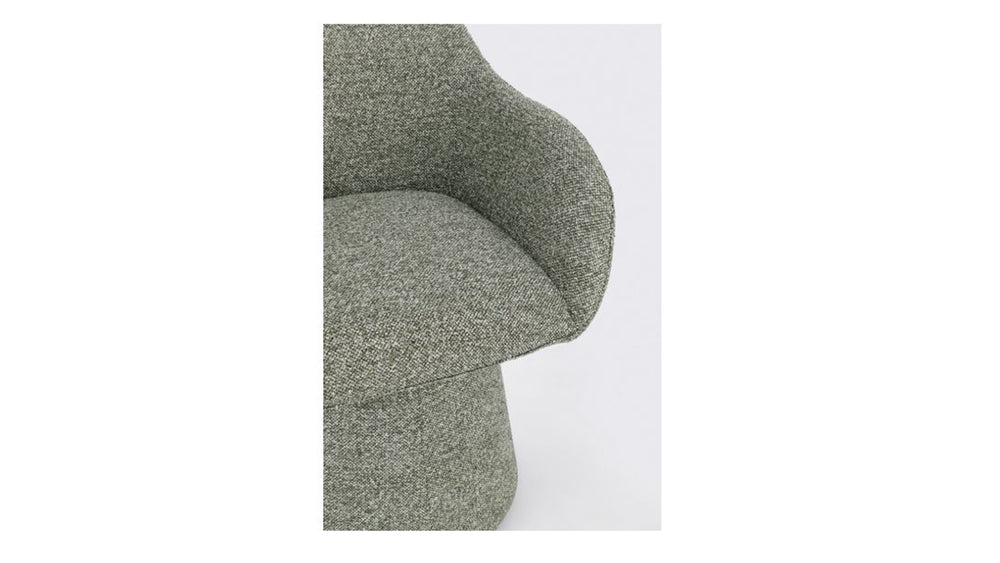 La poltrona GIREVOLE ANTARA VERDE è strutturata in acciaio e compensato. Rivestimento in 100% poliestere effetto boucle, imbottitura in schiuma poliuretanica e girevole 360°